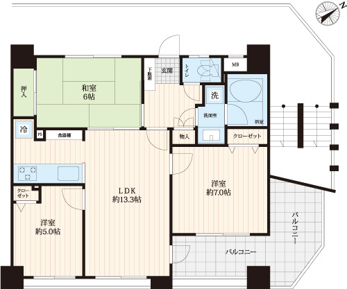 専有面積 66.14m²(20.01坪) バルコニー面積 13.48m²(4.08坪)